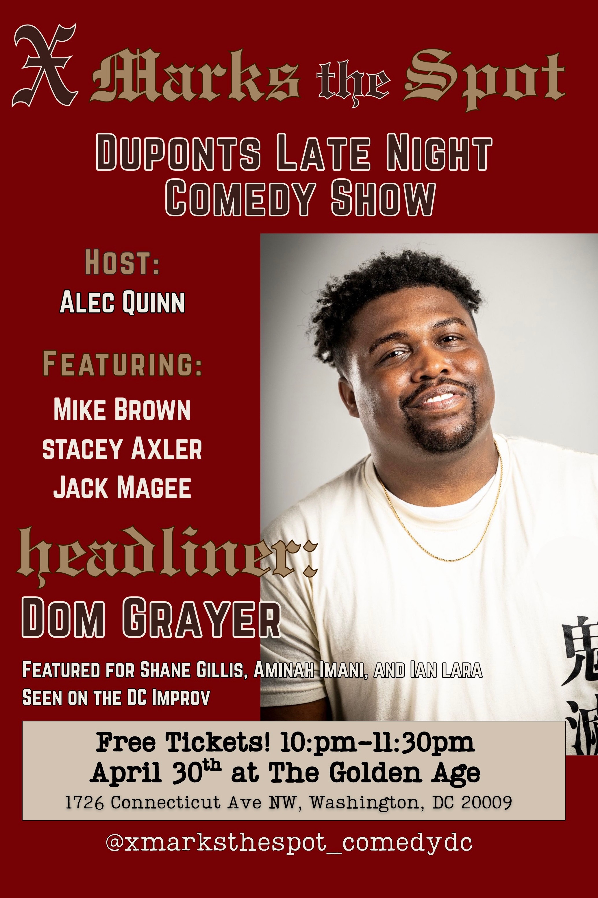 Follow the show instagram! @xmarksthespot_comedydc